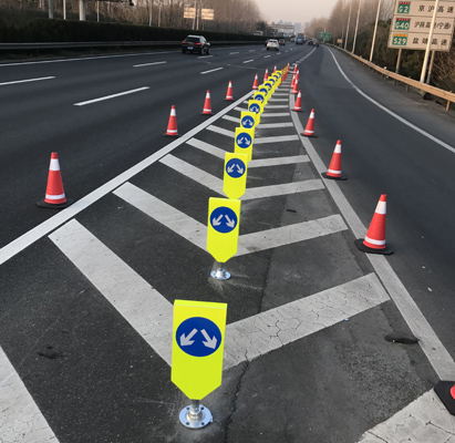 3、产品顶部设有一插旗孔,可供插彩旗或安装警示灯、警示器用。也可在塑料围挡板块上打眼钻孔安装照明灯具或用自攻螺钉固定和连接各种物件,这种小面积的安装都不会影响产品使用的质量和性能。